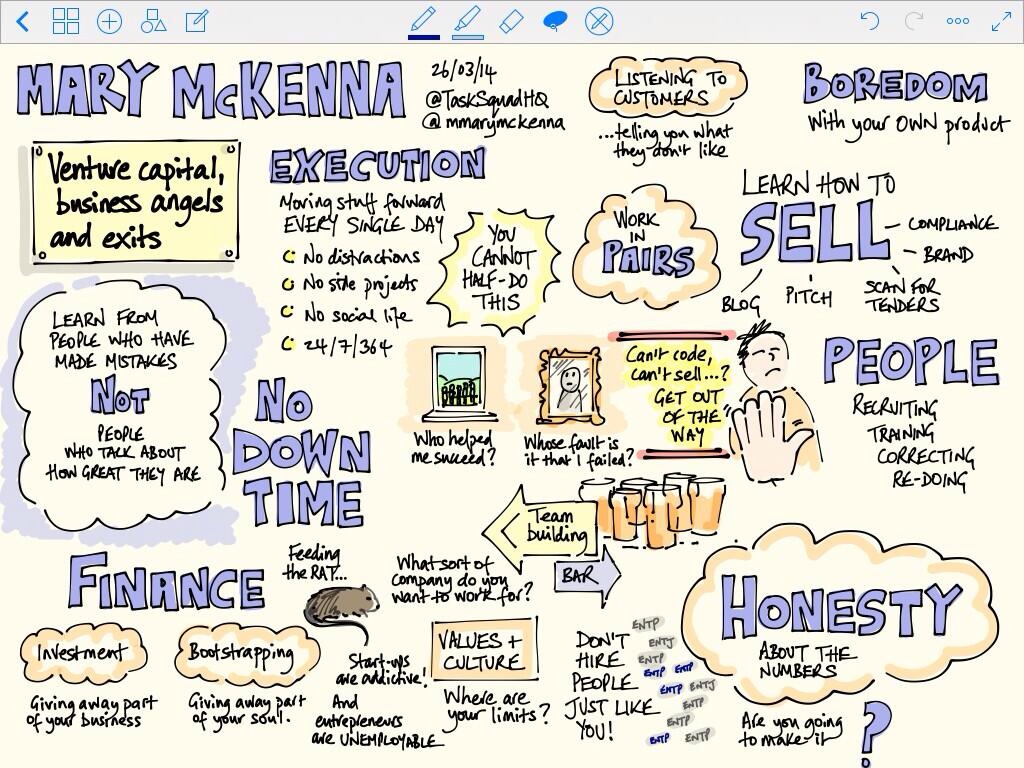 Hello Mary. My friend Meg Peppin pointed me at your blog. So far I’ve only checked this post and it’s great thanks. I particularly love: the sketch notes, doing stuff in pairs, selling, CRM – man I need to fix that one quick! On financing, we are currently self funded and I know I need to think a little more deeply about investment and keeping honest on the numbers. I’m much better at that than previously – but not good enough yet. Such a useful post – nice work.